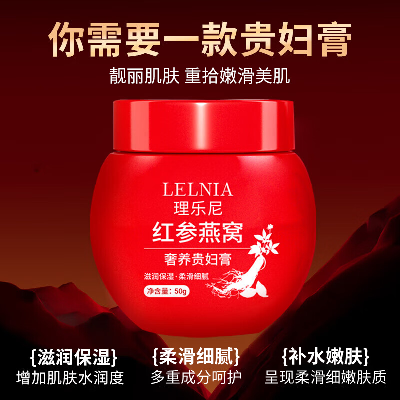 Lelnia红参贵妇膏就像是为现代都市人量身定制的"肌肤充电宝"。它不同于普通面霜只做表面功夫,而是通过珍贵成分深入滋养,让肌肤由内而外焕发光彩。特别添加的红参精华和燕窝提取物,就像给肌肤注入了一剂"营养针",帮助恢复肌肤活力。