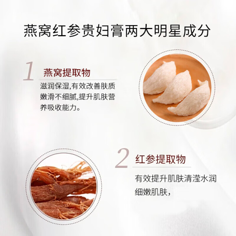 • 提亮:红参精华改善微循环,击退暗沉